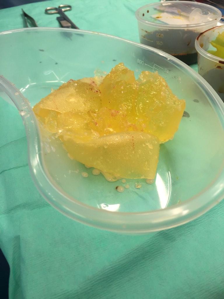 This is what a ruptured PIP implant looks like. Awful. Took two out today. #PIP scandal "